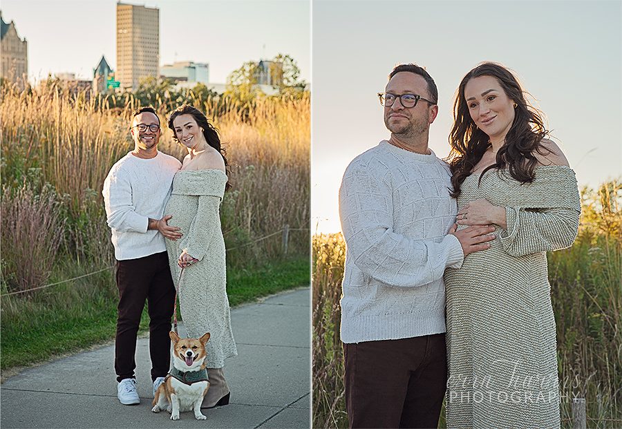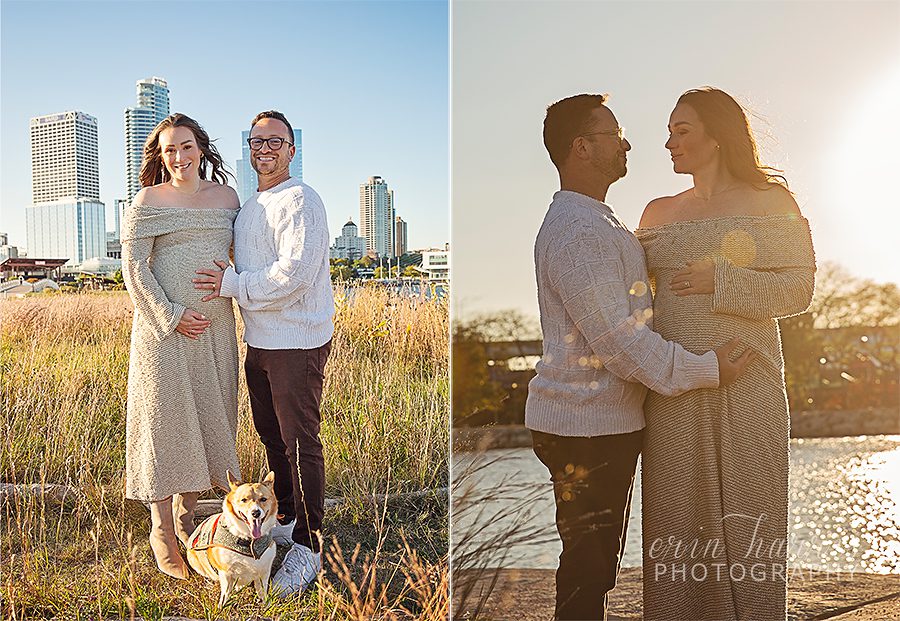 Kelly and Scott are having a baby!! I first met this adorable couple when I was shooting engagement photos for their dear friends. They came along as the “dog sitters,” to take care of Ernie, while his parents were busy posing. ❤️ A few months later, I had the chance to get to know them even better at Kendra and Scott’s wedding, where Scott was the officiant and Kelly was a bridesmaid. Kelly and I spent a lot of time on the bus between photo stops chatting and getting to know one another and I quickly learned that Kelly has both a super warm personality and a HUGE heart. Scott, as the officiant, made it quite apparent that he is the life of a party, but also that he LOVES love. Clearly, these two are a match made in heaven. Not long after the wedding, I did some professional head shots for Kelly. That was super fun, but not nearly as exciting as when she reached out to tell me that she and Scott are expecting a baby girl!! 💗 The sweet little lady is due to arrive very soon, so we met at the lakefront to capture some photos of Kelly and Scott with their fur baby before they become a family of four. Stay tuned next month…I can’t wait!