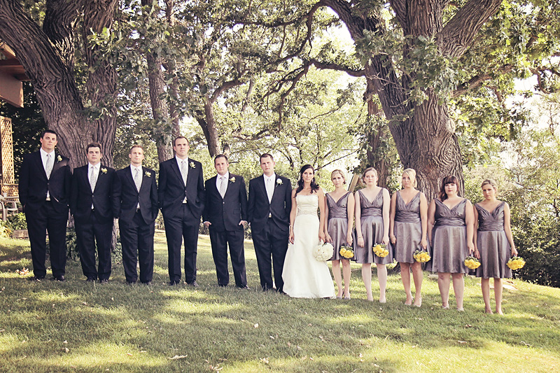 I met Robin and Adam in the spring of 2011 on a cold and rainy day. Not unusual for spring in Wisconsin. However the crazy thing was, it was sunny that morning, but as I was driving to meet them at Alterra on the Lake, (which is the same location I met them later that summer to shoot their engagement photos) the sky suddenly opened up and down poured tiny pellets of snow-like hail. There was something almost momentous about it. Fast forward 15 months to Robin and Adam’s June wedding at the Seven Seas on Lake Nagawicka in Hartland. It was an incredibly hot and humid day. Not unusual for summer in Wisconsin. However, it feels exceptionally hotter when you’re nine-months pregnant and lugging around super heavy camera equipment. That afternoon, Robin and Adam said their vows under a giant arbor on a friends-and-family-packed lakefront terrace. It was a tad bit cloudy, but as the two became one, the sky opened up and down poured beautiful rays of hazy sunshine. There was something most certainly momentous about it. Their wedding was filled with classic touches and brilliant hues of yellow and gray. Good food was followed by great toasts and as the sun was setting, it seemed like every guest, young and old, had their dancing shoes on.