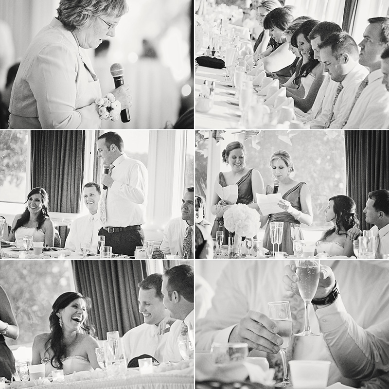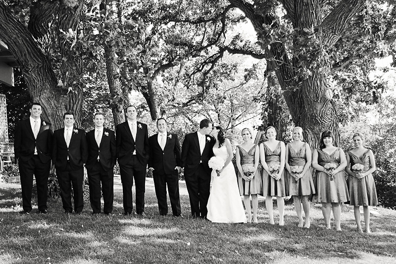 I met Robin and Adam in the spring of 2011 on a cold and rainy day. Not unusual for spring in Wisconsin. However the crazy thing was, it was sunny that morning, but as I was driving to meet them at Alterra on the Lake, (which is the same location I met them later that summer to shoot their engagement photos) the sky suddenly opened up and down poured tiny pellets of snow-like hail. There was something almost momentous about it. Fast forward 15 months to Robin and Adam’s June wedding at the Seven Seas on Lake Nagawicka in Hartland. It was an incredibly hot and humid day. Not unusual for summer in Wisconsin. However, it feels exceptionally hotter when you’re nine-months pregnant and lugging around super heavy camera equipment. That afternoon, Robin and Adam said their vows under a giant arbor on a friends-and-family-packed lakefront terrace. It was a tad bit cloudy, but as the two became one, the sky opened up and down poured beautiful rays of hazy sunshine. There was something most certainly momentous about it. Their wedding was filled with classic touches and brilliant hues of yellow and gray. Good food was followed by great toasts and as the sun was setting, it seemed like every guest, young and old, had their dancing shoes on.